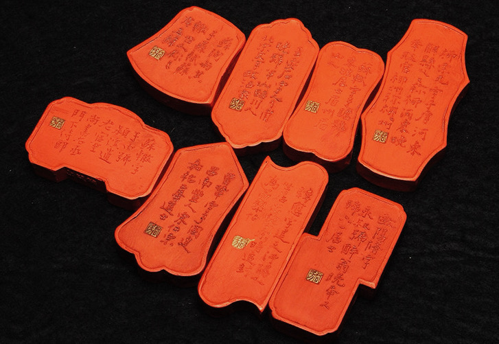 唐宋八大家藏墨共八錠,每錠墨上面圖案雖不同,但都與製墨歷史有關或是同墨的使用相聯繫。
