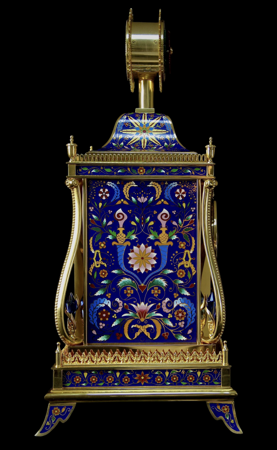 這款座鐘的原物館藏於北京故宮博物院,座鐘原物是一個系列,在 1772 年(乾隆三十七年),英國派遣馬夏爾尼勳爵(George Lord Macartney)攜帶豐盛的禮物,率領使團到中國,來祝賀乾隆皇帝八十大壽,此款座鐘則做為當時祝壽的賀禮進獻給乾隆皇帝。