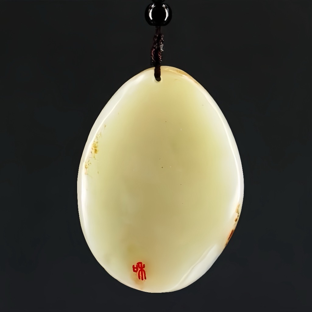 本件《靜心自在觀音》為高端和田玉原石精雕掛件,整體以自然原型保留為設計理念,依玉而形、順勢而刻,最大程度保留了和田玉原始形態的靈氣與流線。玉質細膩溫潤,打磨與拋光後呈現出如凝脂般的潤澤光感與極致的絲滑觸感,每一次觸碰皆是一場靜心體驗。