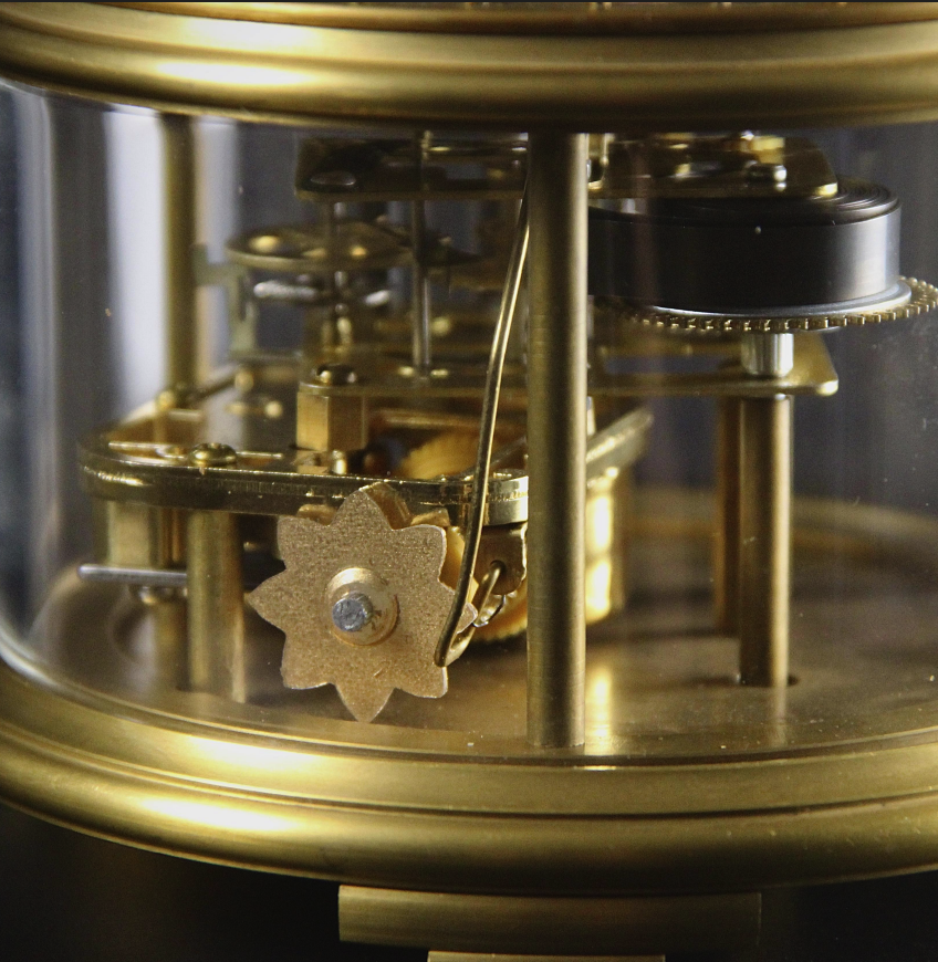 座鐘下部機芯雖小巧,卻集走時、音樂、時針校準及鬧鐘設定於一身,功能完備。它不僅是時間的精準記錄者,也是家中的藝術品,將科學與美學完美融合。