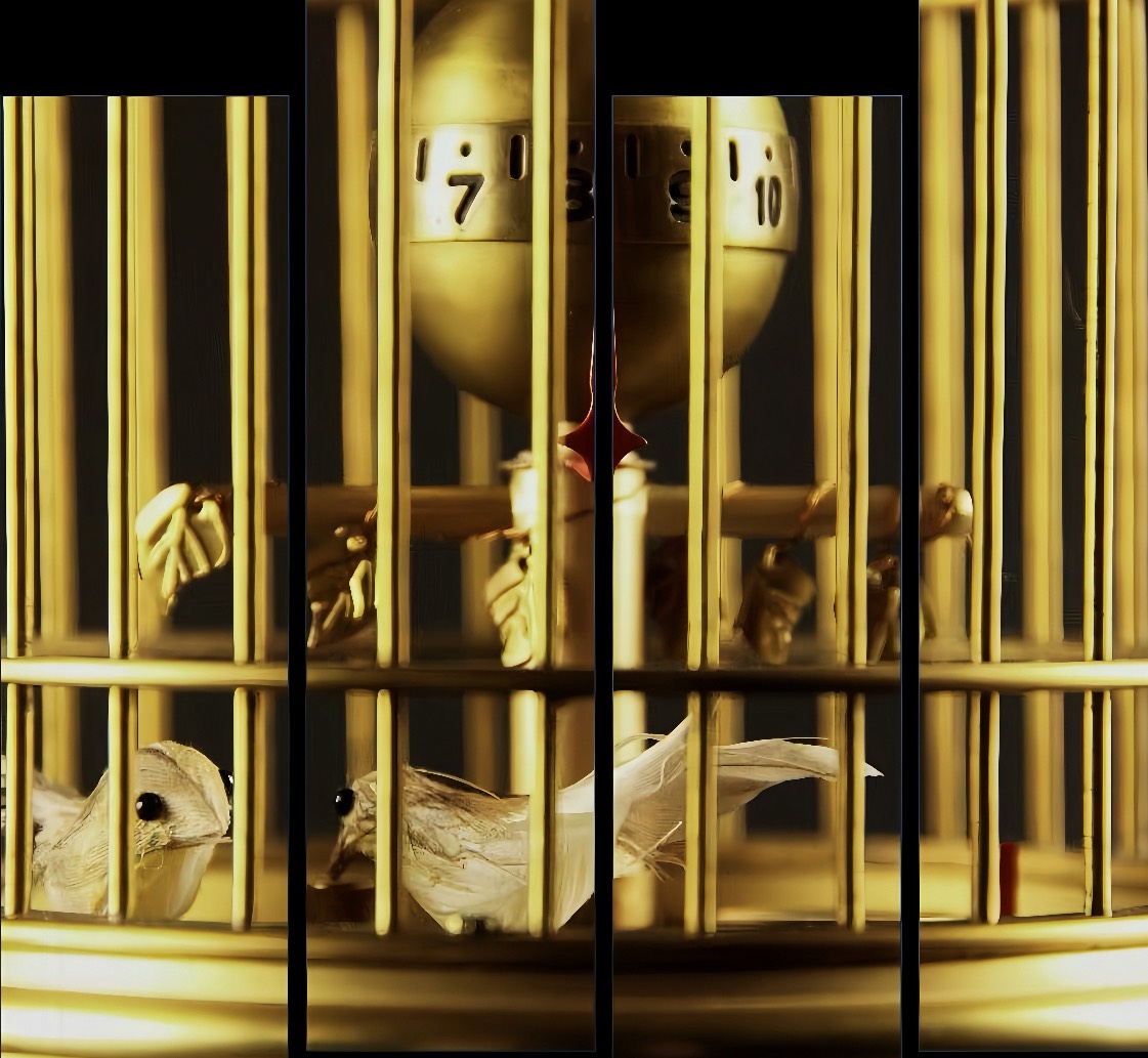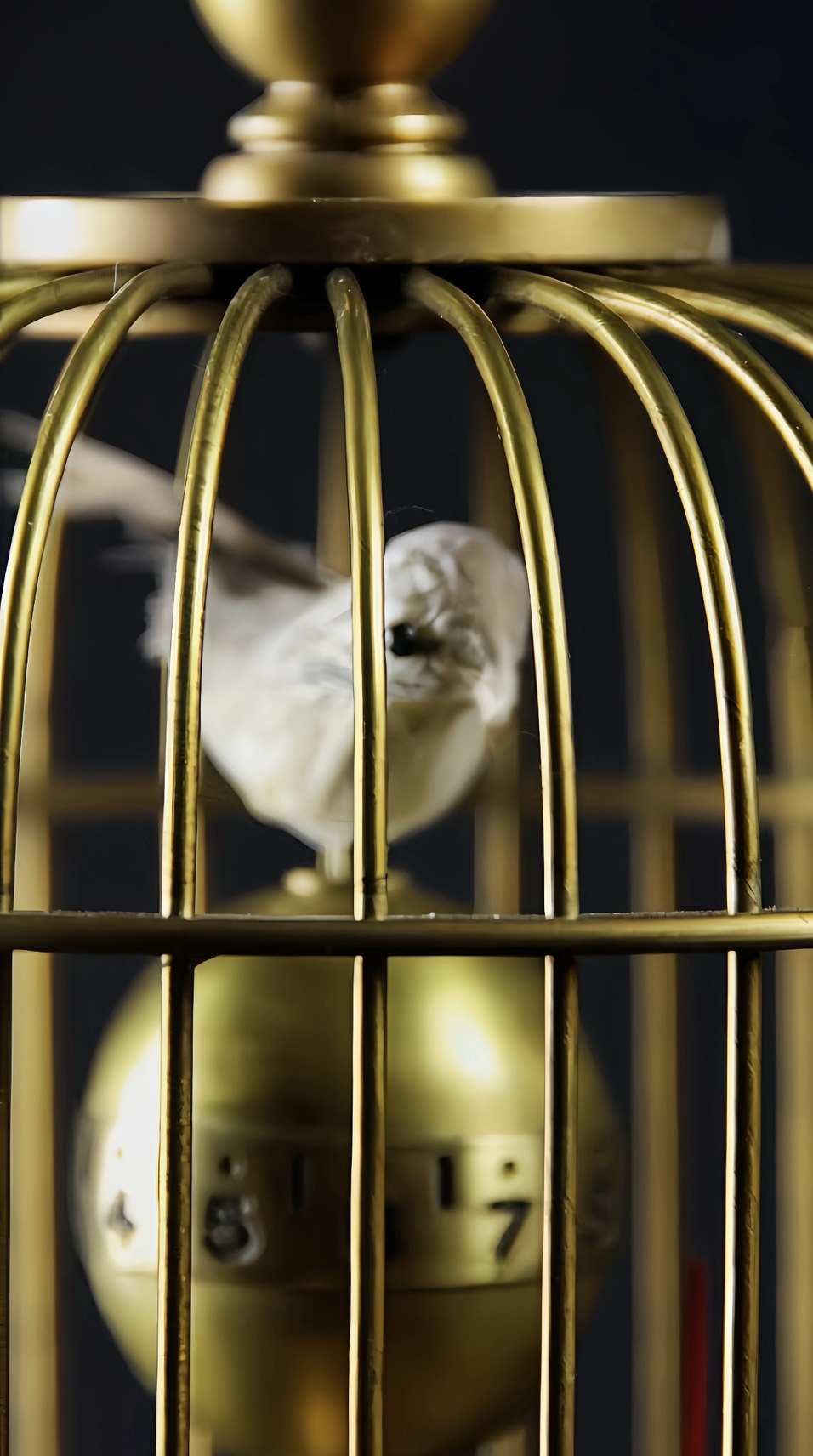 這款座鐘以精致的鳥籠造型呈現,外觀典雅,工藝精湛。分為上下兩區,上部展示時針、鬧時功能,並伴有三只靈動小鳥,隨時間輕舞。